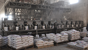 將高品位研磨級鋁礬土原料在礬土豎窯中加以煅燒,成為礬土熟料。