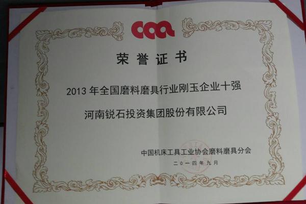 熱烈祝賀河南銳石集團榮獲2013年全國剛玉企業十強