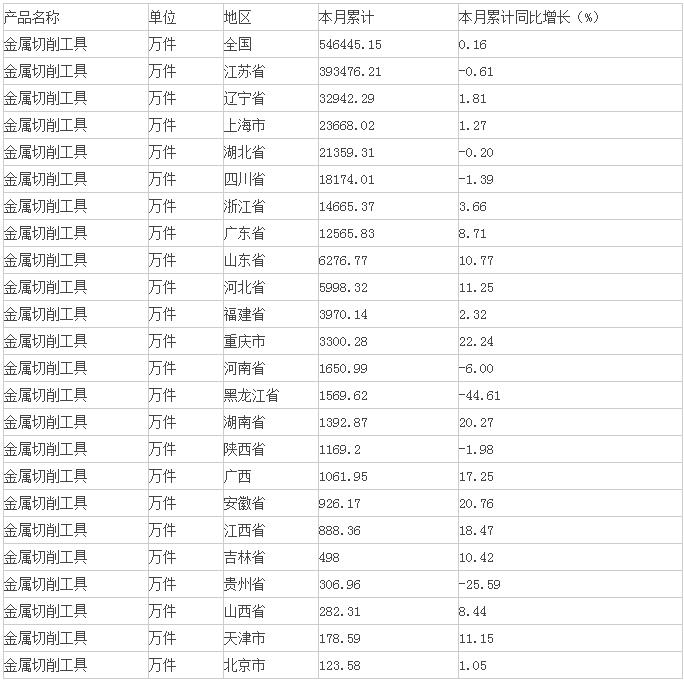 研究數據顯示:2015年1-7月生產金屬切削工具54.64 億件,同比增長0.16 %。