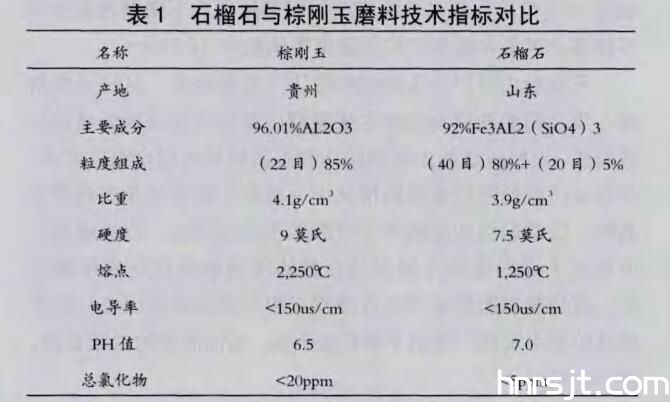 (2)選用一等棕剛玉和優質鐵鋁石榴石磨料各項指標均能符合技術規格書要求。