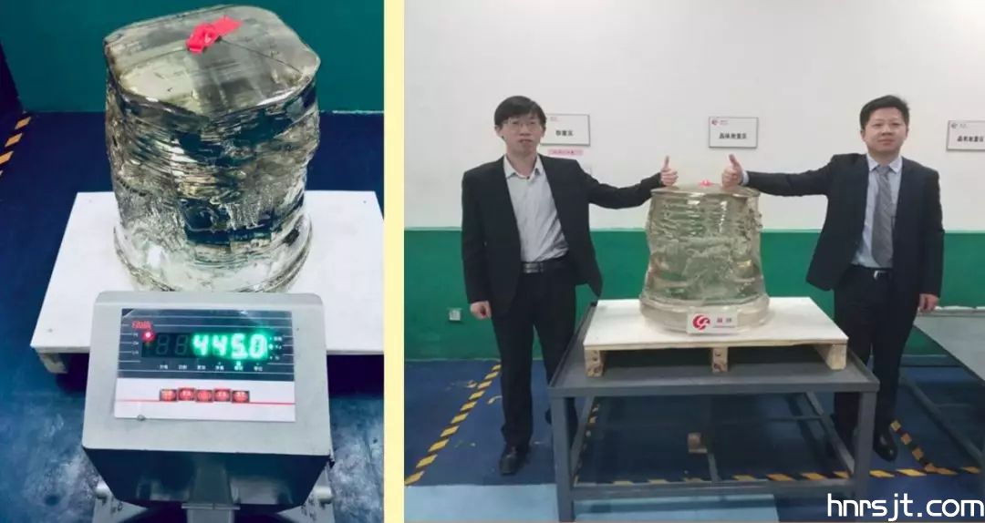 圖4:晶環電子采用泡生法制備的450公斤大尺寸藍寶石晶體